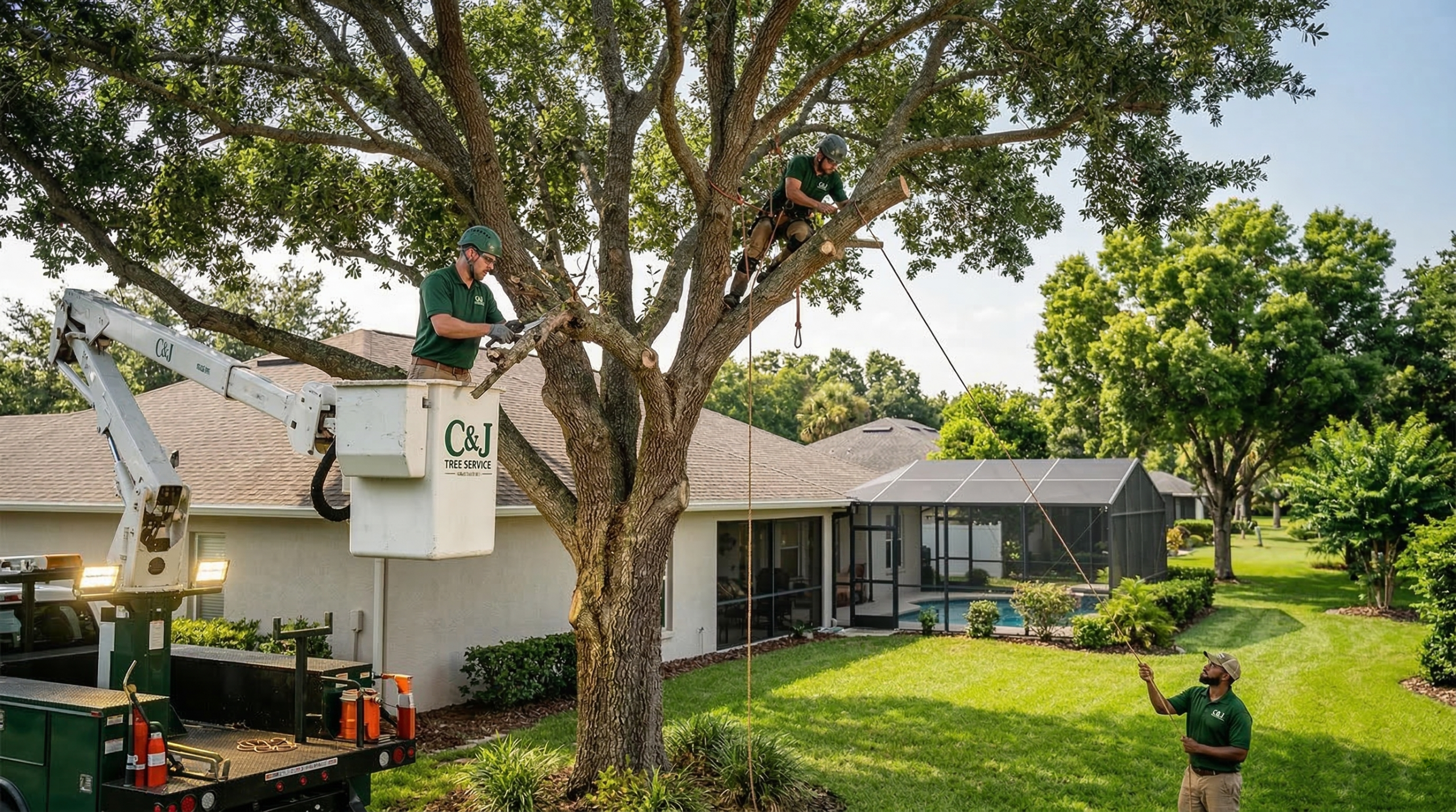 Whether we are using bucket trucks for high-reach oaks or professional climbers for tight residential spaces in Clermont and Minneola, our team prioritizes the safety of your home and property above all else.